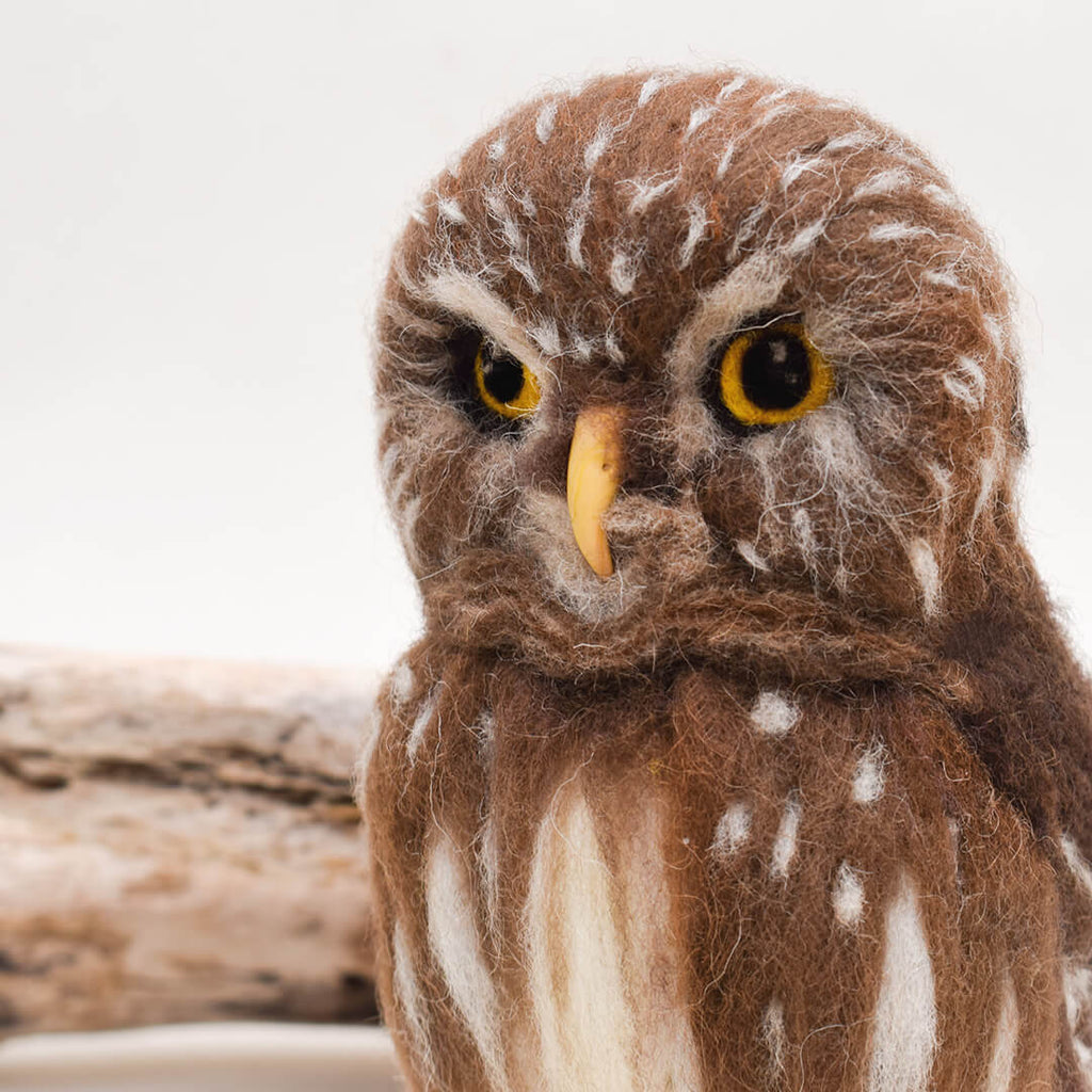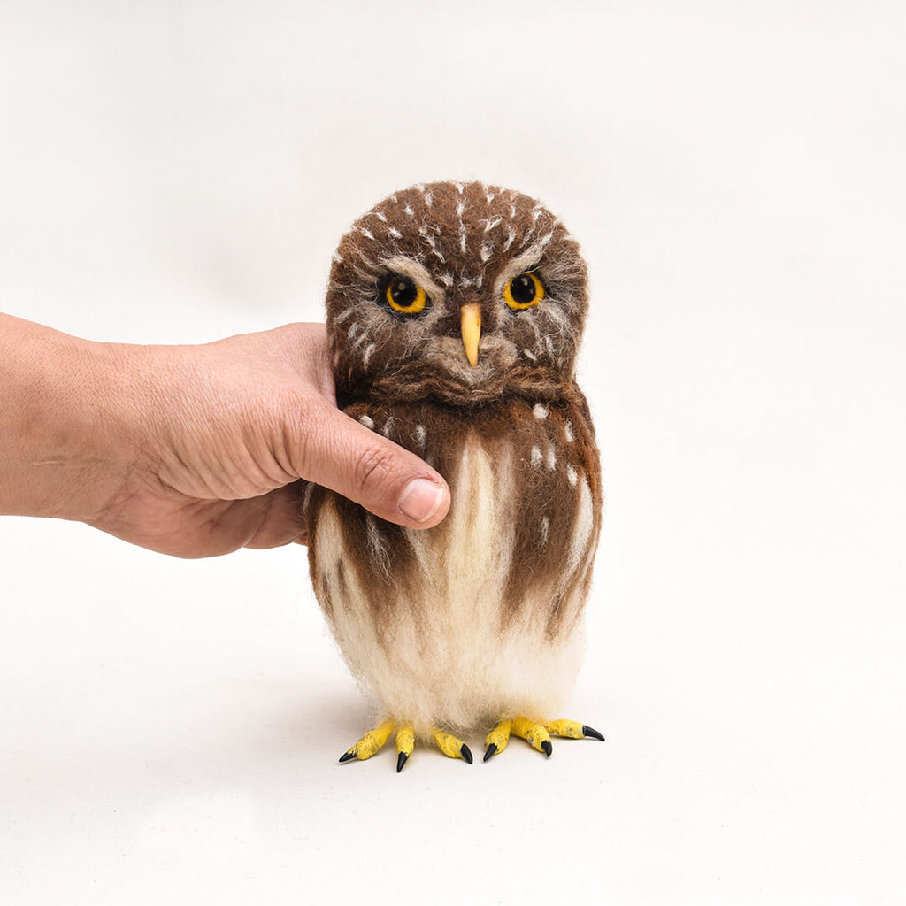 Materiales: Vellón cardado, estructura de alambre, pico de arcilla polimérica y patas recubiertas con floral tape.