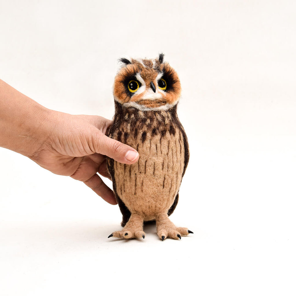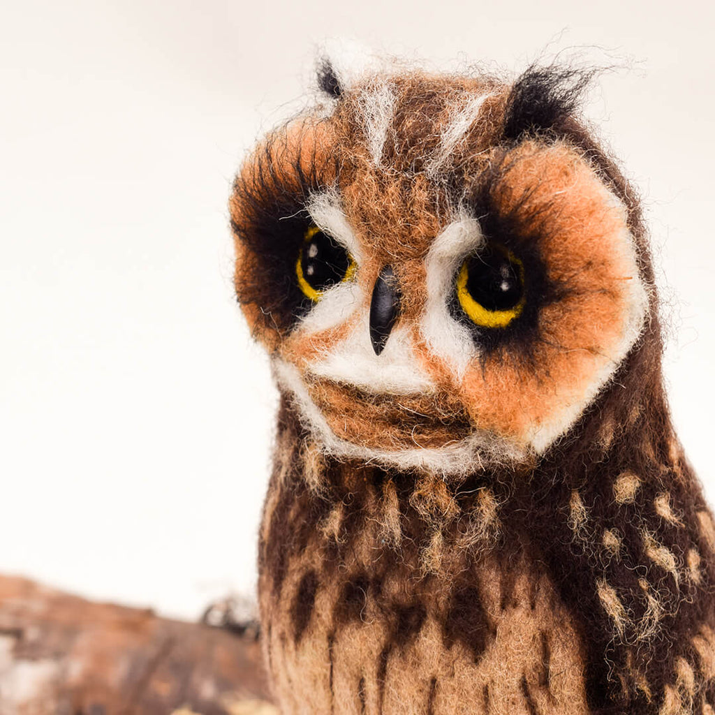 Materiales: Vellón cardado, estructura de alambre, pico de arcilla polimérica y patas recubiertas con floral tape.